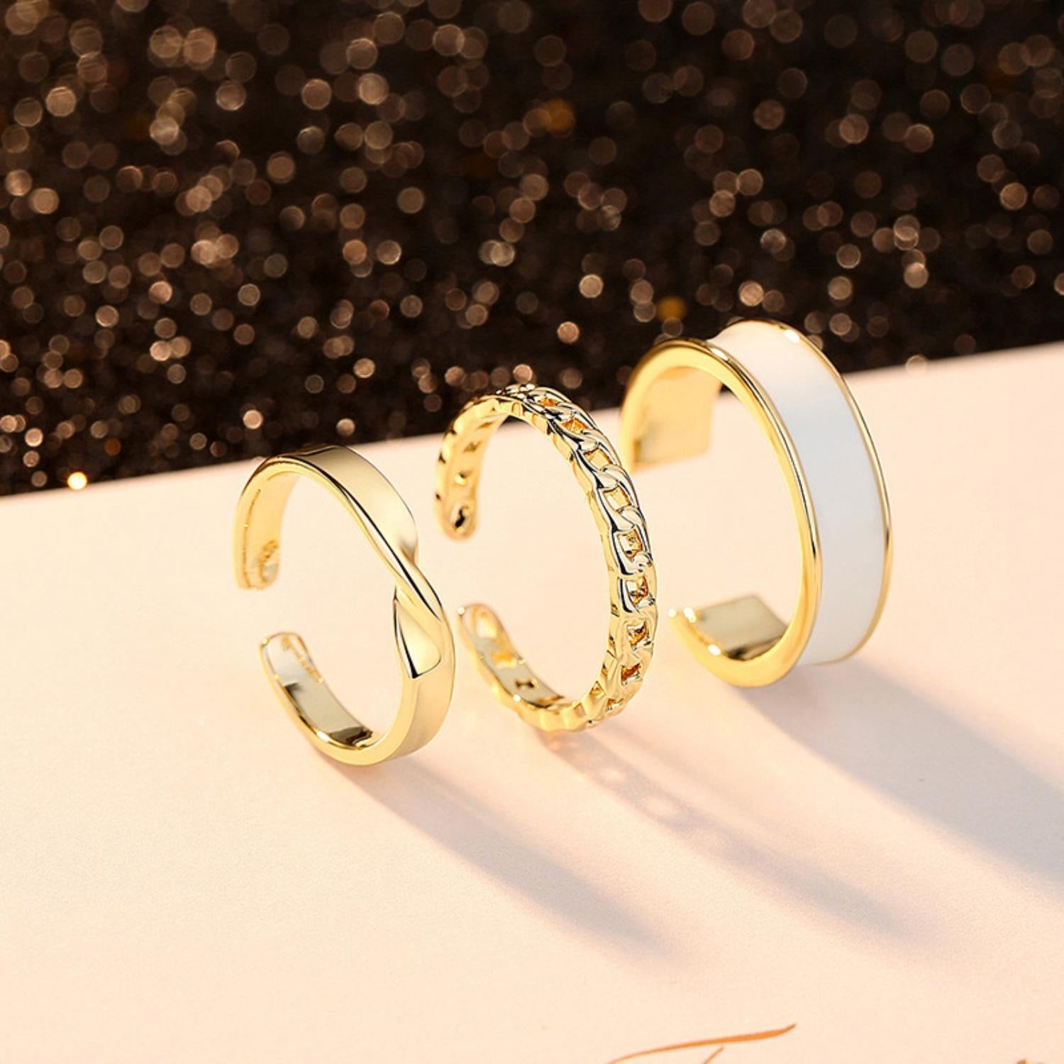 This delightful tri-stack ring showcases three intertwined bands, blending texture and brilliance for a striking, contemporary look.